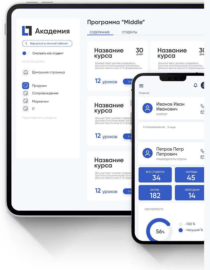 Инновационная платформа для онлайн обучения, в которой удобно учиться и обучать. Начните создавать курсы и программы для обучения уже сейчас, либо используйте готовые. Систематизируйте свой бизнес вместе с нами.