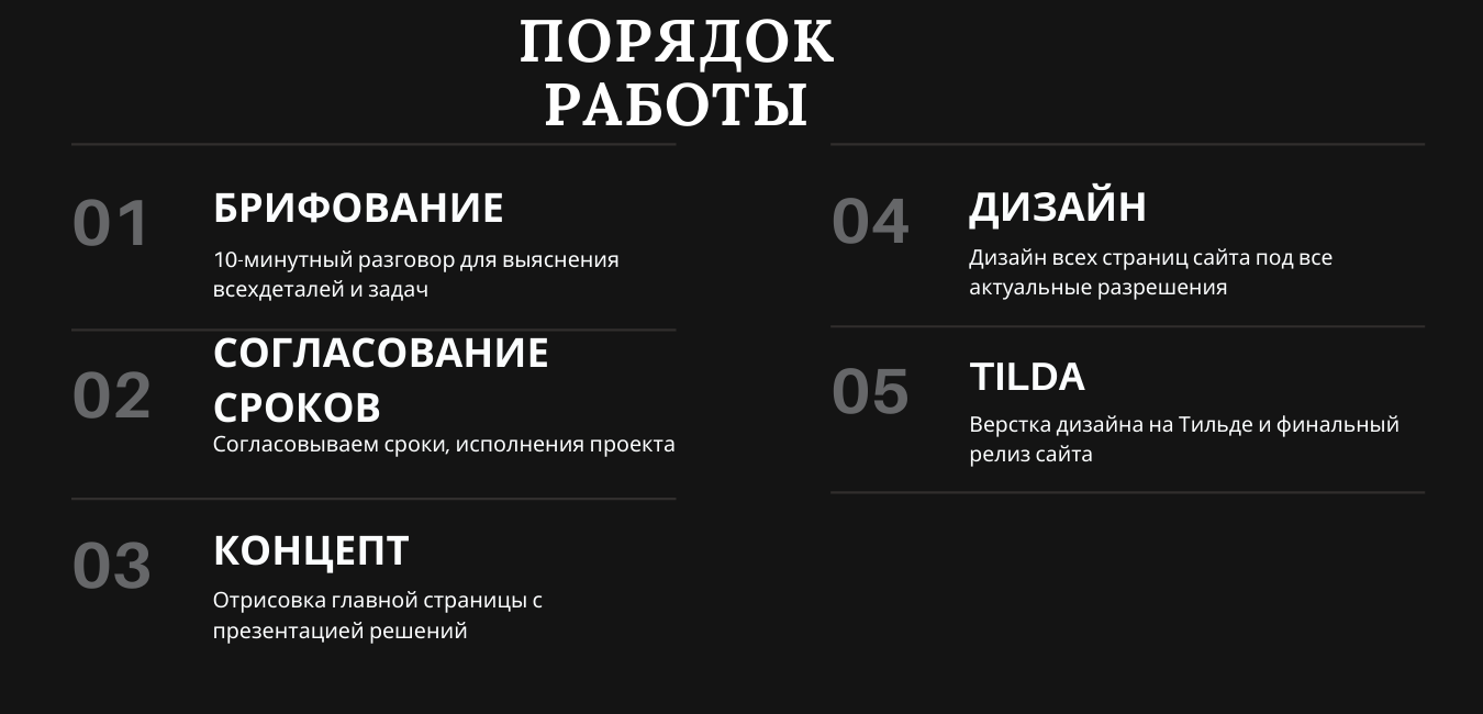 Мы создаем продуманные и полноценные сайты на платформе Тильда, используя как готовые так и уникальные решения